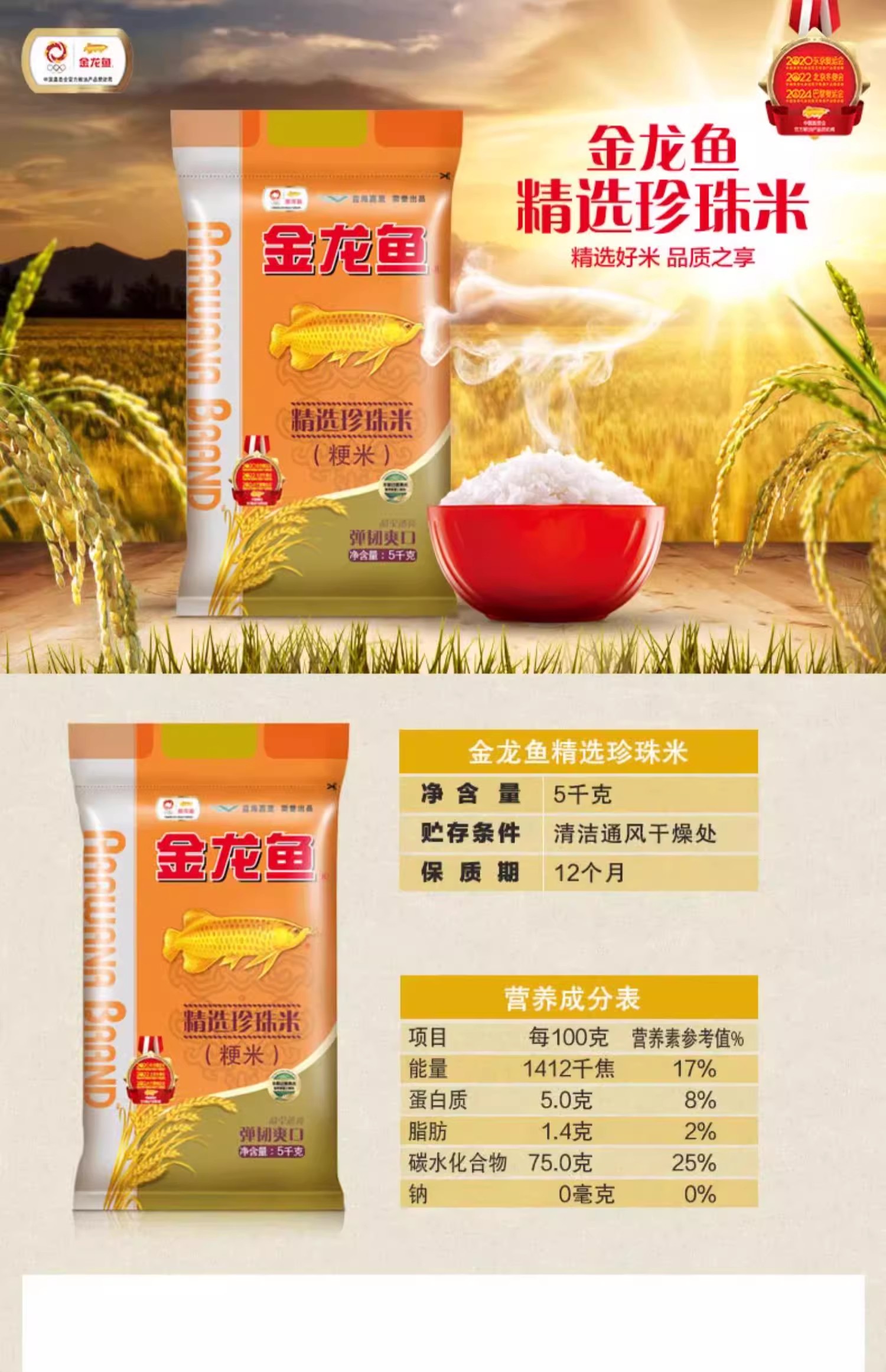 金龙鱼精选珍珠米5KG/袋